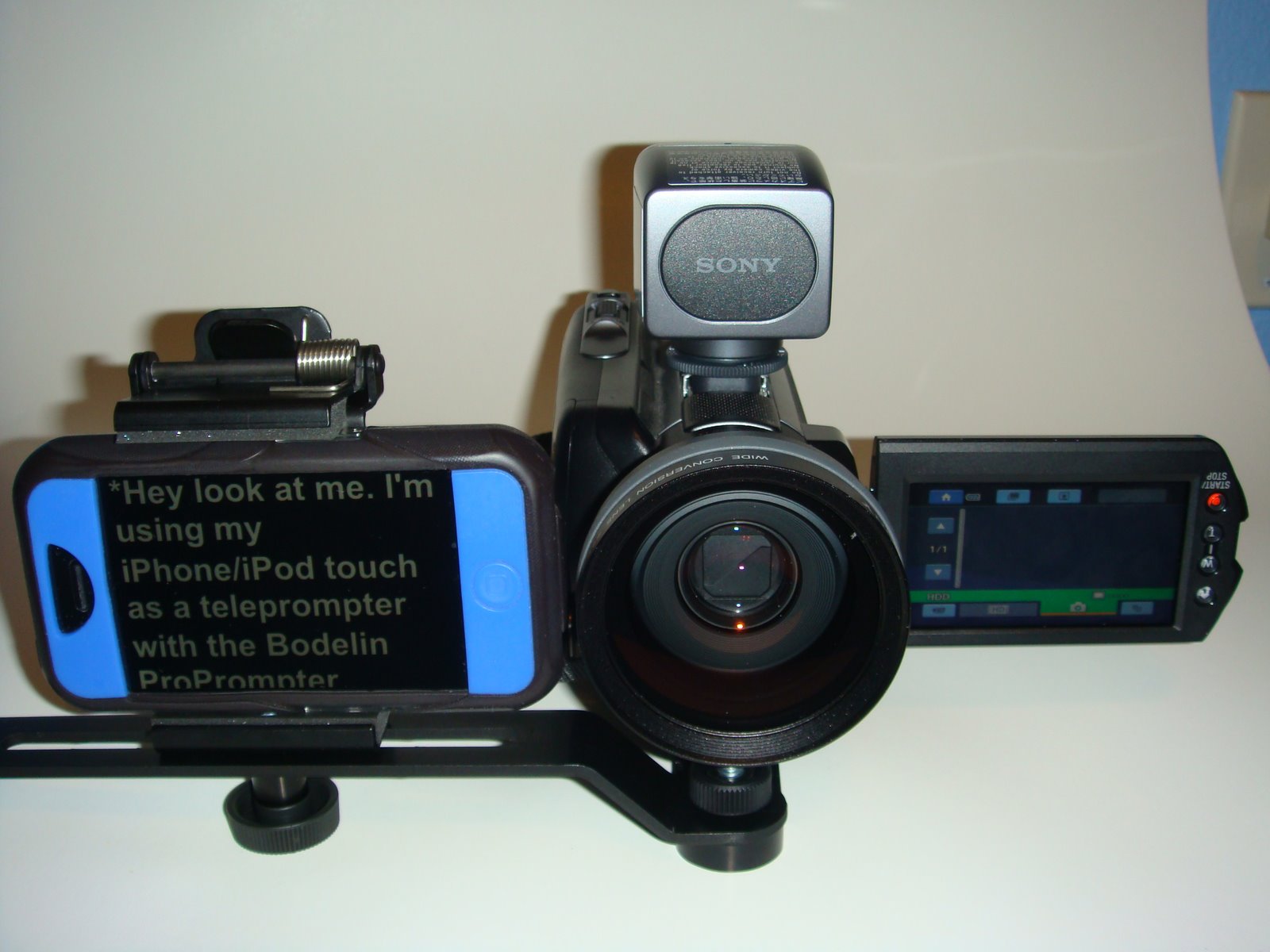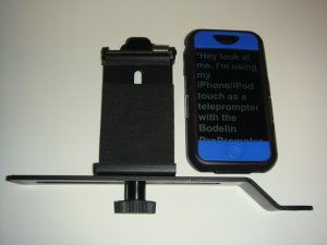 Through reading several video related blogs, I ended up coming across products from Bodelin Technologies. They made teleprompters, but for more higher end video production. Recently they created a lower end product for some of the video bloggers out there. The product they created was the ProPrompter Wing and a ProPrompter iPhone/iTouch App.