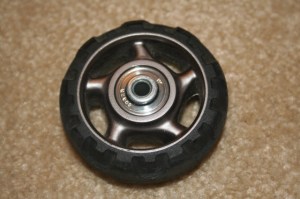 One thing I’ve noticed is that the wheels don’t quite track in the same direction with the bag. Each of the wheels (if looking from the wheel side) point out which causes some uneven wear on the wheels as you can see in the picture below. Notice the lighter color on the wheel which indicates this is the part that makes contact with the ground.