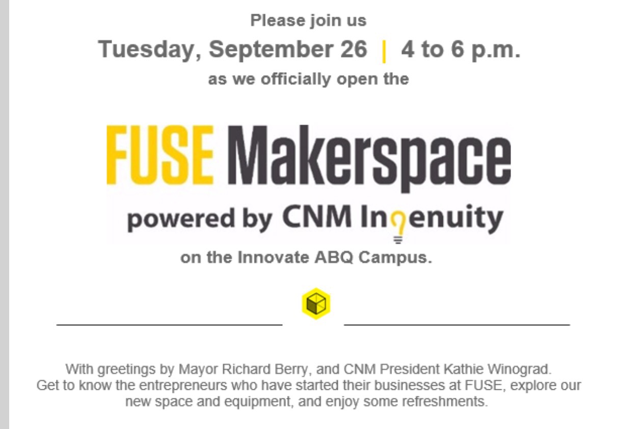 I started on the board of directors for CNM Ingenuity, Inc back in February this year and this has been one of the most visible and impressive efforts of this organization so far (after the deep dive coding boot camp). This new maker space allows anyone in the Albuquerque area access to tools and support to truely innovate and bring business ideas to life. Check out the website!