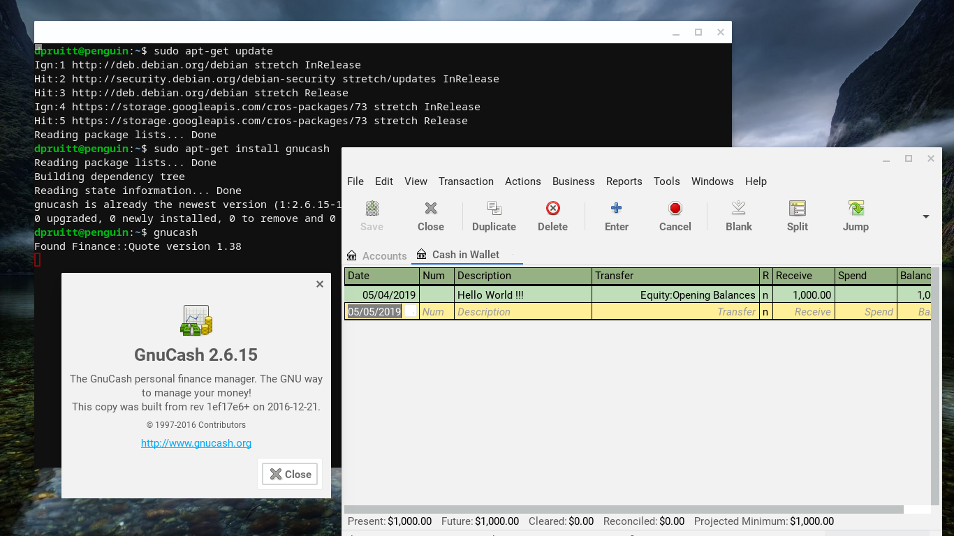 I’ve been looking for some time for a solution to run the GnuCash free accounting software local on the Chromebook, now we have it.